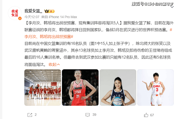 - 女篮16人集训名单大调整!韩旭李月汝即将回归 最终12人已见端倪